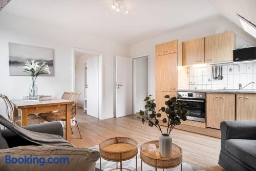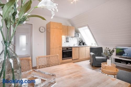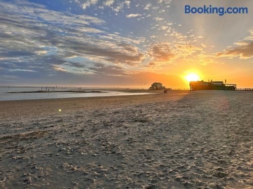 Beachfront Property with Stunning ViewsThe recently renovated Sky & Sand SPO Salzwiese I Strandurlaub am Leuchtturm offers a serene garden and garden view, providing a peaceful escape in Sankt Peter-Ording.Modern Amenities and ComfortThis apartment features 2 separate bedrooms, a fully equipped kitchen with a dishwasher, and a cozy living room with a flat-screen TV, ensuring a comfortable stay for guests.Outdoor Adventure and Recreational ActivitiesGuests can take advantage of cycling, hiking, snorkelling, and windsurfing in the area, with bicycle rental and water sports facilities available on-site for added convenience.Book now for an unforgettable beachfront getaway at Sky & Sand SPO Salzwiese I Strandurlaub am Leuchtturm!