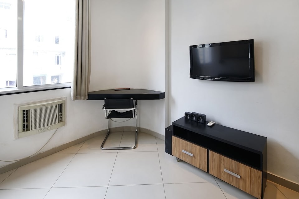 Este apartamento se encuentra en el barrio Copacabana de Río de Janeiro, cerca de la playa. Si lo tuyo son las compras, Centro comercial Shopping Tijuca es una parada obligatoria. Para los que prefieren sumergirse en la naturaleza, Playa de Copacabana y Playa de Ipanema son dos excelentes opciones. Jardín Botánico de Río de Janeiro y Acuario AquaRio también merecen la pena. Este apartamento tan agradable en Río de Janeiro te permitirá disfrutar de todo tipo de actividades. Al disponer de un aparcamiento en las inmediaciones, podrás olvidarte de tu vehículo y dar un paseo hasta Playa de Copacabana y Avenida Atlântica. Descubre otras zonas y adéntrate más en Río de Janeiro: estarás a 7 min a pie de la Estación de metro Cardeal Arcoverde, de modo que coger el metro te resultará muy sencillo. Este alojamiento de 1 dormitorio y 1 baño cuenta con una sala de estar, un sofá cama, aire acondicionado y ventilador de techo. Disfruta del wifi gratis, de la televisión LCD y del reproductor de DVD. Además, dispone de una ducha con efecto lluvia y toallas. Prepara una comida casera en la cocina básica, equipada con placa de cocina, frigorífico/congelador grande, microondas y utensilios de cocina.