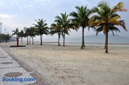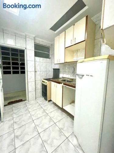 Located 700 metres from Gonzaga Beach and 1.3 km from Miramar Shopping in Santos, Apartamento em Santos no Boqueirão offers accommodation with a kitchen. It is set 5.4 km from Santos Bus Station and provides a 24-hour front desk.
