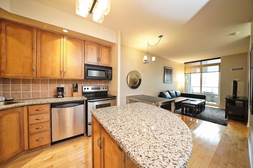 Located in Toronto, RivetStays - The Icon is in the city center. CF Toronto Eaton Centre and The Distillery Historic District are worth checking out if shopping is on the agenda, while those wishing to experience the area's popular attractions can visit Ripley's Aquarium of Canada and Hockey Hall of Fame. Check out an event or a game at Rogers Centre, and consider making time for Royal Ontario Museum, a top attraction not to be missed. Aparthotel units with kitchens, 5-minute walk to Rogers CentreThis smoke-free aparthotel features laundry facilities. Each apartment provides a kitchen with a refrigerator, an oven, a stovetop, and a microwave. For a bit of entertainment, a Smart TV comes with cable channels, and guests can also appreciate conveniences like a washer/dryer and a coffee/tea maker. RivetStays - The Icon offers 20 air-conditioned accommodations with washers/dryers and coffee/tea makers. Kitchens offer full-sized refrigerators/freezers, stovetops, microwaves, and cookware/dishes/utensils. Bathrooms include bathtubs or showers, complimentary toiletries, and hair dryers. Guests can surf the web using the complimentary wireless Internet access (speed: 500+ Mbps (good for 6+ people or 10+ devices)). 65-inch Smart televisions come with cable channels. Additionally, rooms include irons/ironing boards and blackout drapes/curtains.
