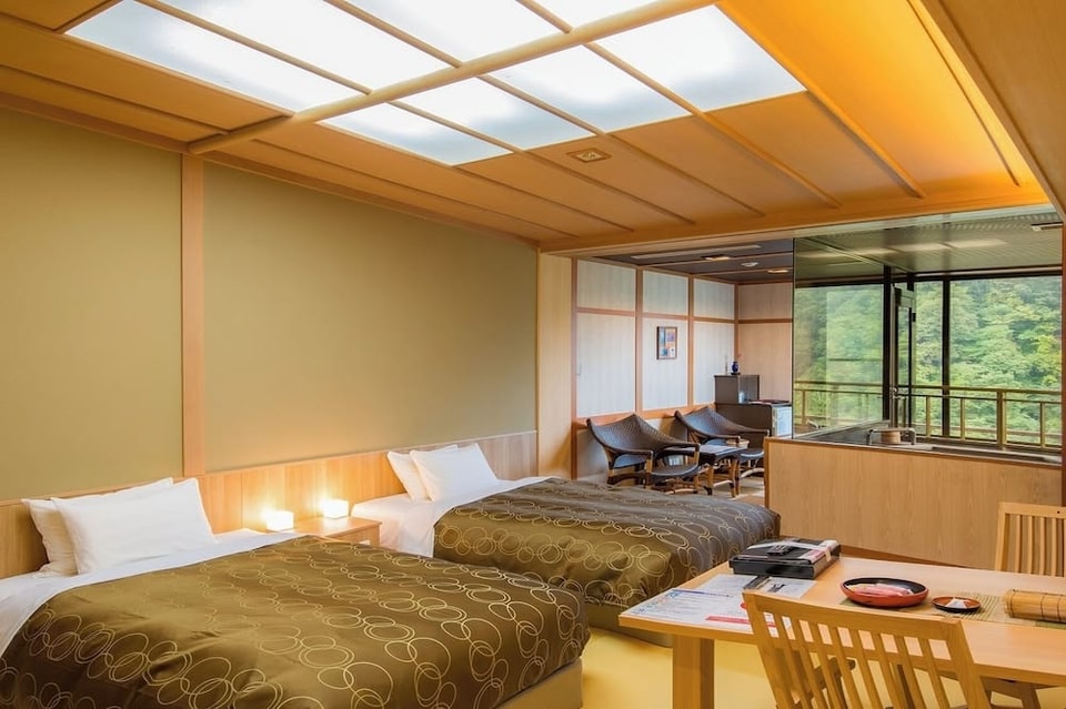 Guests can enjoy soaking in the indoor and outdoor public hot-spring baths at Nikko Senhime Monogatari. Massages can be requested and a sauna room is available for an extra relaxation.