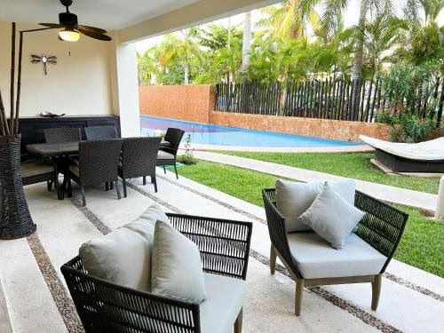 Luxurious Ground Floor Apartment with Private PoolPrivate Beach Area and Garden: Enjoy the convenience of a private beach area and a garden to relax in.Modern Amenities: The apartment features a fully equipped kitchen, flat-screen TV, and free WiFi for your entertainment.Outdoor Activities: Explore the area with bike tours and unwind on the sun terrace after a day of adventures.Book now to experience the ultimate blend of luxury and comfort at Ground floor Puerto Aventuras a pasos de la playa.